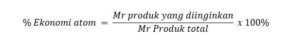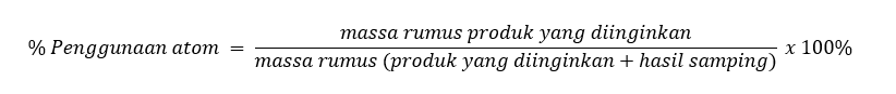 Tujuan utama green chemistry adalah merancang produk/proses kimia dengan target menghilangkan atau mengurangi penggunaan atau produksi zat berbahaya. Selama sintesis produk kimia tertentu, atom-atom reaktan mungkin tidak semuanya tergabung dalam produk yang diinginkan, tetapi sebagian bergabung menjadi produk samping dan produk limbah yang mungkin berbahaya bagi lingkungan. Profesor Sheldon dari Delft University, Belanda mengkuantifikasi konsep ekonomi atom. Untuk menghitung jumlah produk limbah dalam reaksi tertentu, ia menghitung persentase penggunaan atom dengan membagi berat molekul produk yang diinginkan dengan berat molekul semua produk yang dihasilkan dalam reaksi sebagai berikut.