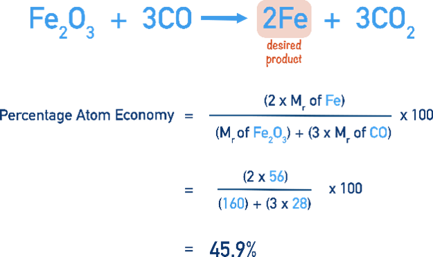 Reaksi dengan persentase atom ekonomis tinggi merupakan hal yang baik karena lebih sedikit massa reaktan yang 'terbuang' untuk menghasilkan produk yang tidak diinginkan. Namun, berhati-hatilah – hanya karena suatu reaksi memiliki persentase atom ekonomis yang tinggi, bukan berarti hasil produknya juga tinggi (lihat di bawah).
